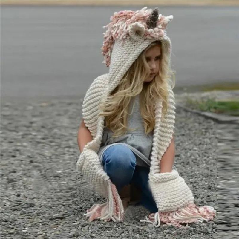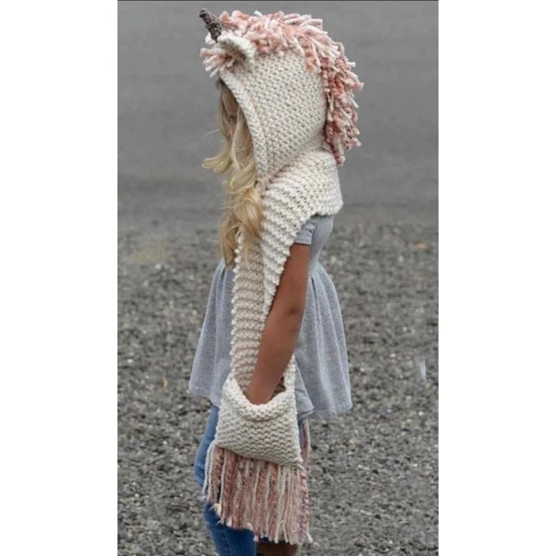 Crochet Unicorn Hooded Scarf