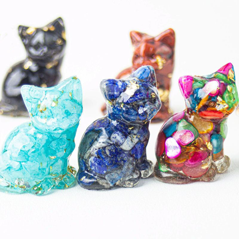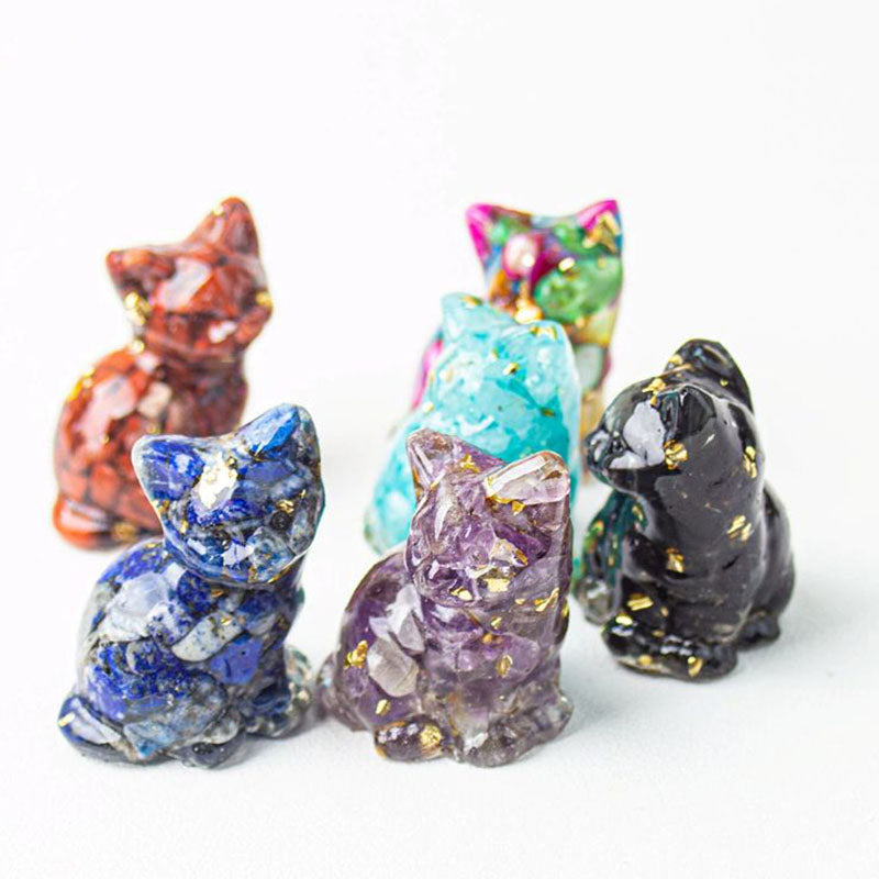 Colorful Stone - Handmade Natural Crystal Gemstone Sitting Cat