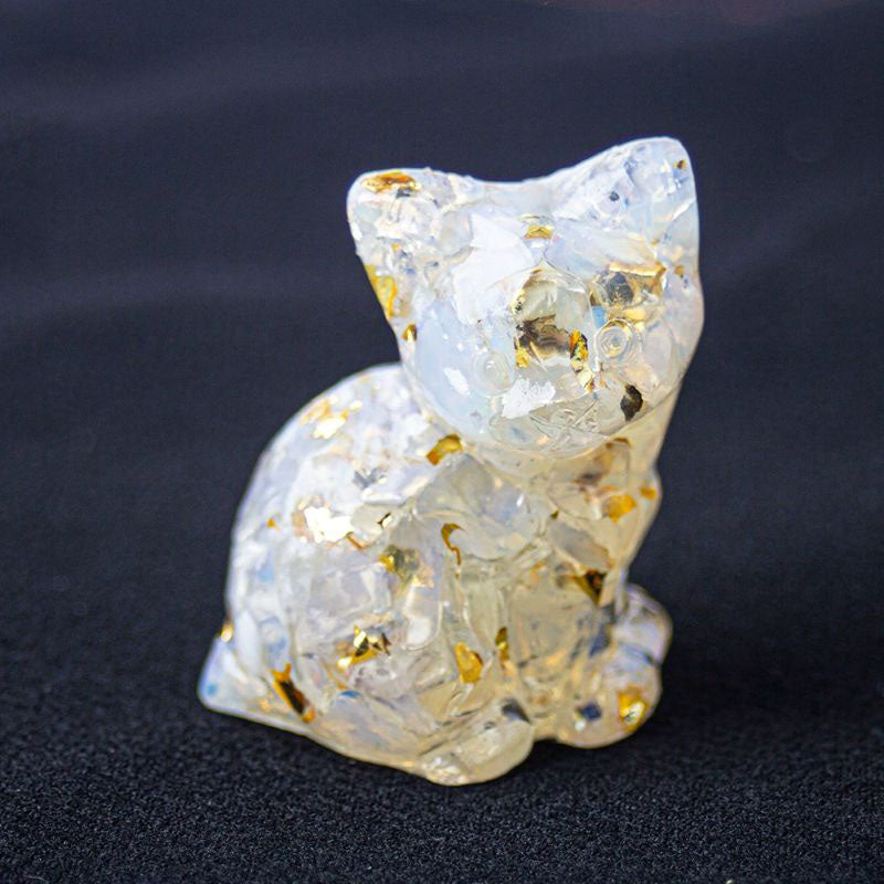 White Opal - Handmade Natural Crystal Gemstone Sitting Cat