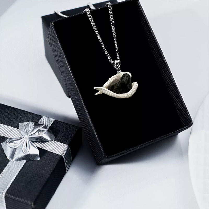 Black Cocker Spaniel Sleeping Angel Stainless Steel Necklace SN035