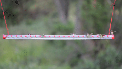 With its welcoming banquet for up to 18 hummingbirds at a time.