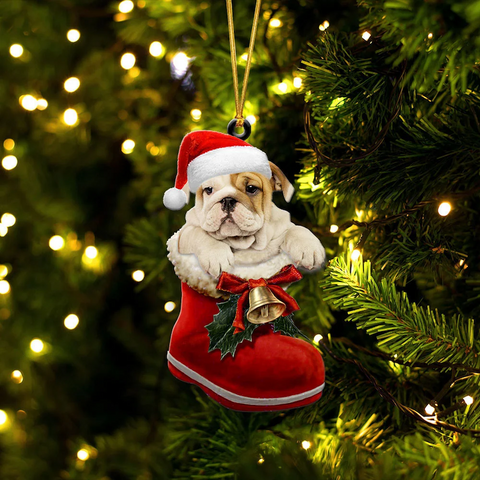 Bulldog In Santa Boot Christmas Hanging Ornament SB041