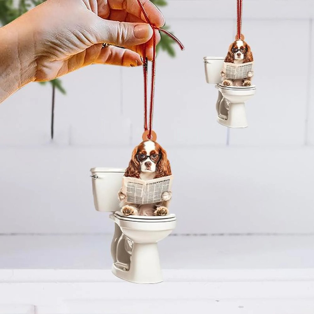 Designed for pet lovers with a sense of humor, this Dog Sitting On Toilet Ornament is perfect for hanging on your Christmas tree, car rearview mirror, desk, or anywhere a laugh is needed. It also makes a great gift for friends, family, or anyone who loves dogs and quirky decor.