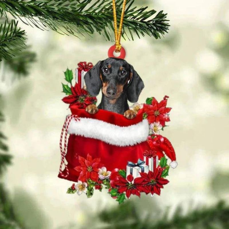 Dachshund In Gift Bag Christmas Ornament GB135