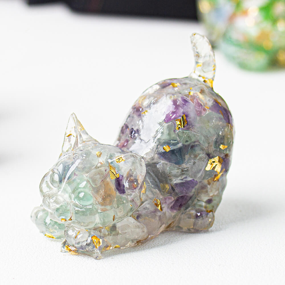 Fluorite - Handmade Natural Crystal Gemstone Cat with Raised Tail
