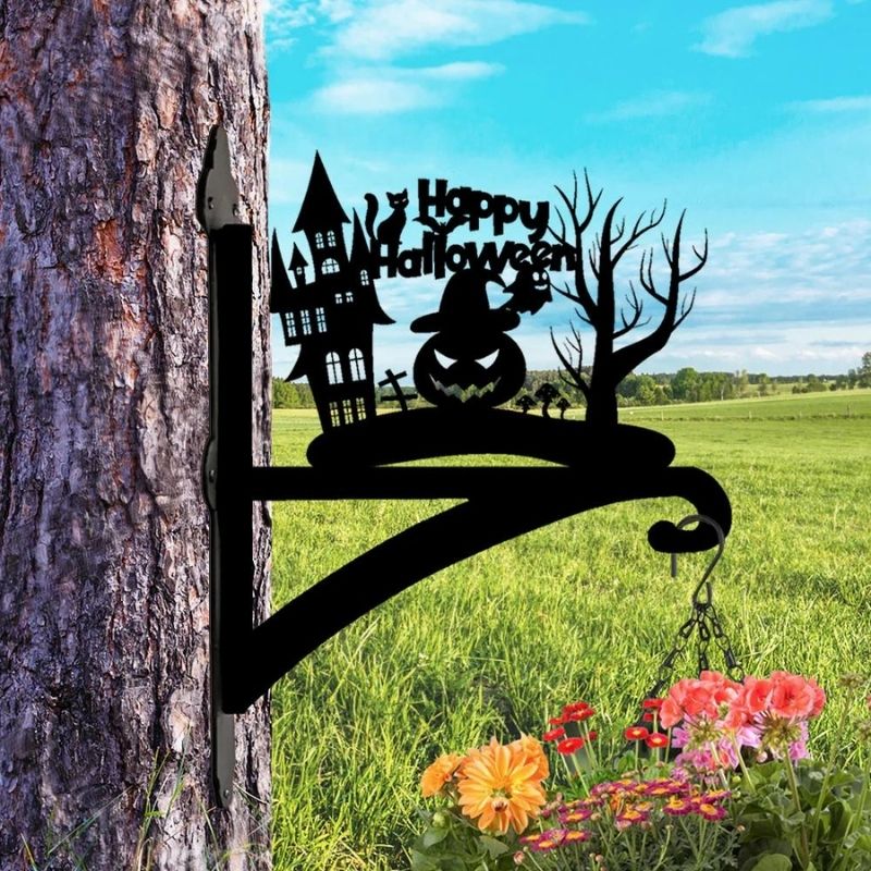 Happy Halloween Pumpkin Metal Hanging Bracket Plant Stand PS146