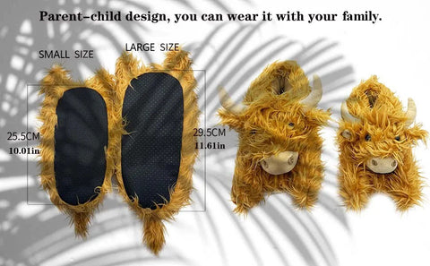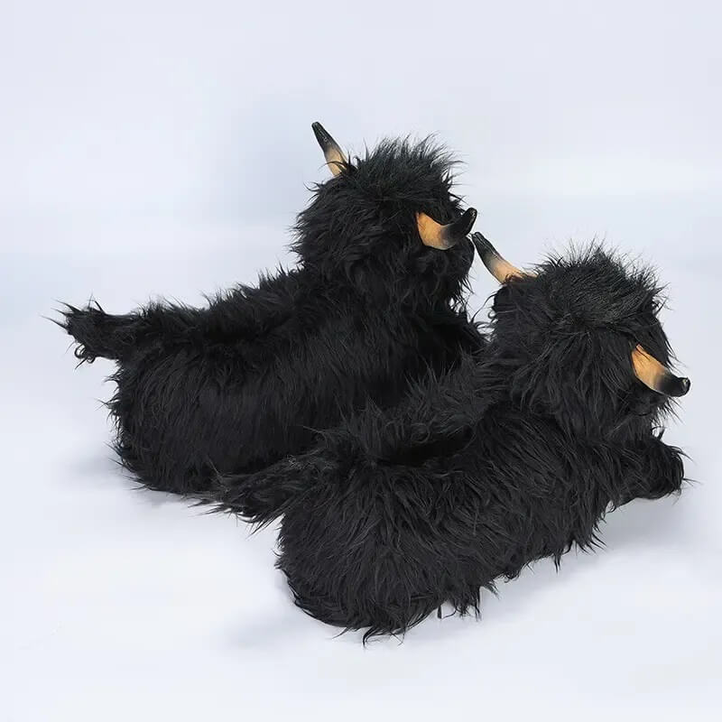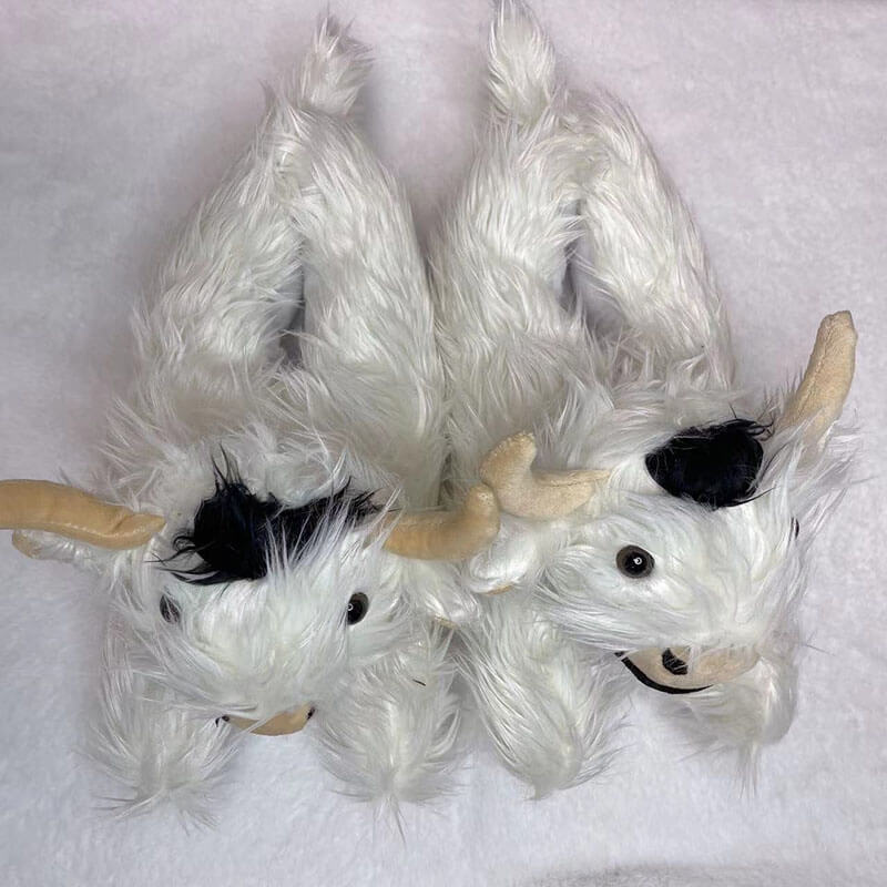 These scottish highland cattle slippers with a unique animal shape design,like a real highland cow. Long horns, fuzzy tails,can be matched with cute socks, easy to attract others' attention.