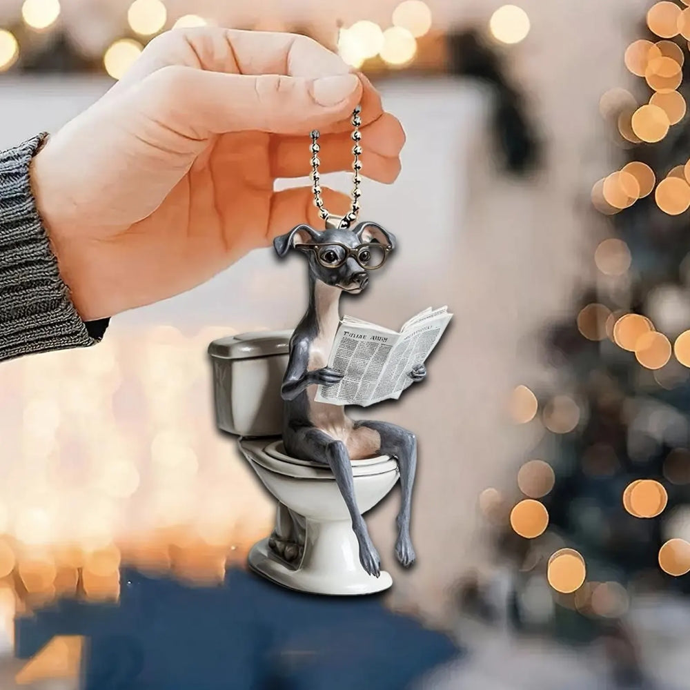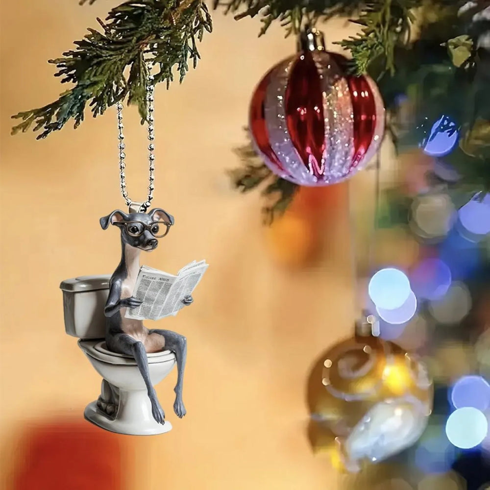 Designed for pet lovers with a sense of humor, this Dog Sitting On Toilet Ornament is perfect for hanging on your Christmas tree, car rearview mirror, desk, or anywhere a laugh is needed. It also makes a great gift for friends, family, or anyone who loves dogs and quirky decor.