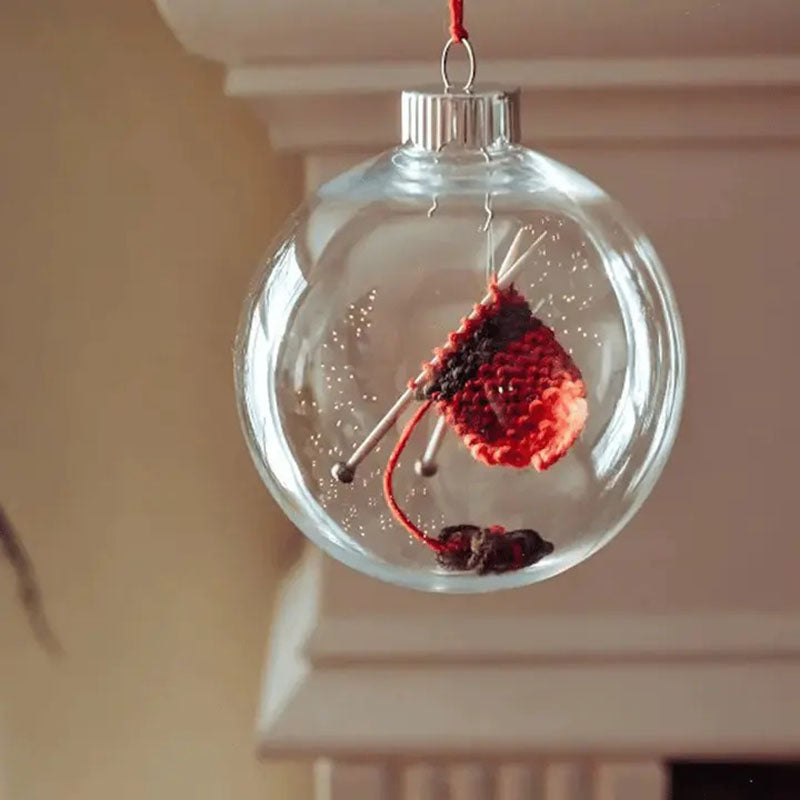 🧶These handmade ornaments feature a "WIP" (work in progress) still on the needles and displayed inside of an acrylic ornament, perfect for the knitter in your life.