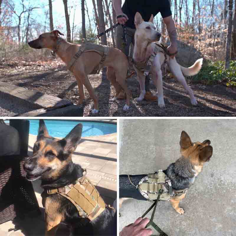 Made of durable high-quality 1000D nylon and well-padded in all pressure areas, our Tactical Harness will secure your dog comfortably so you can take back control while handling tough pulls! (not to mention: it's comfy & looks great!)