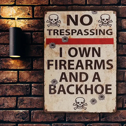 No Trespassing I Own Firearms And A Backhoe Private Property - Personalized Custom Metal Sign