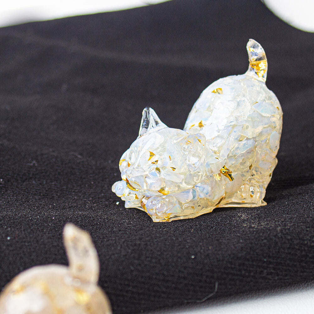 Opal - Handmade Natural Crystal Gemstone Cat with Raised Tail