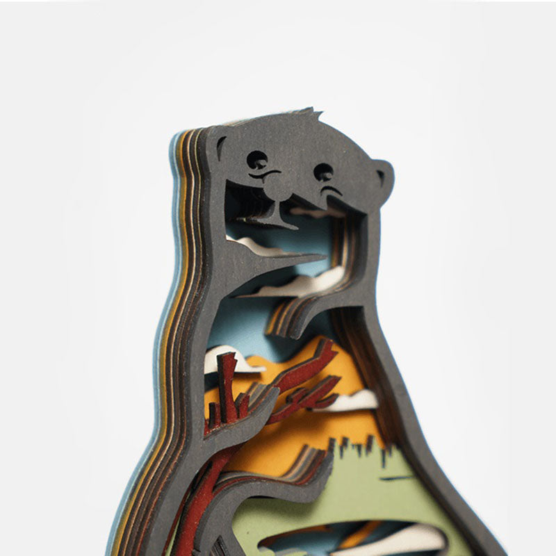 Our designer took a signature pose of an otter as the overall shape of this piece. The inside design represents otters' habitat with water and trees. When you look closer, you will see little otters inside, resting and playing at their home.
