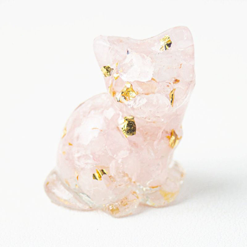 Rose Quartz - Handmade Natural Crystal Gemstone Sitting Cat