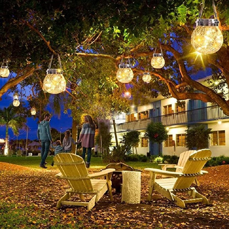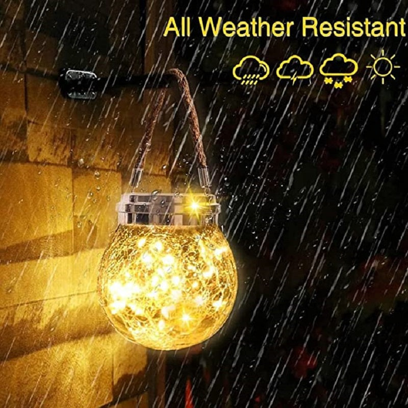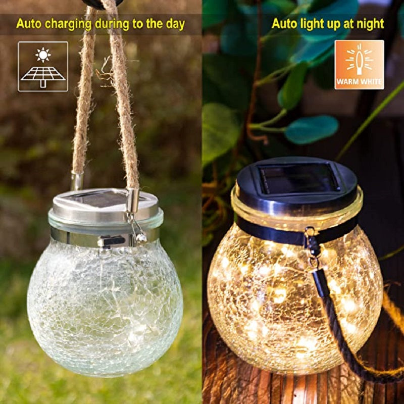 1 Piece Clear Crackle Glass Wishing Jar LED Hanging Light Modern Solar Pendant Light