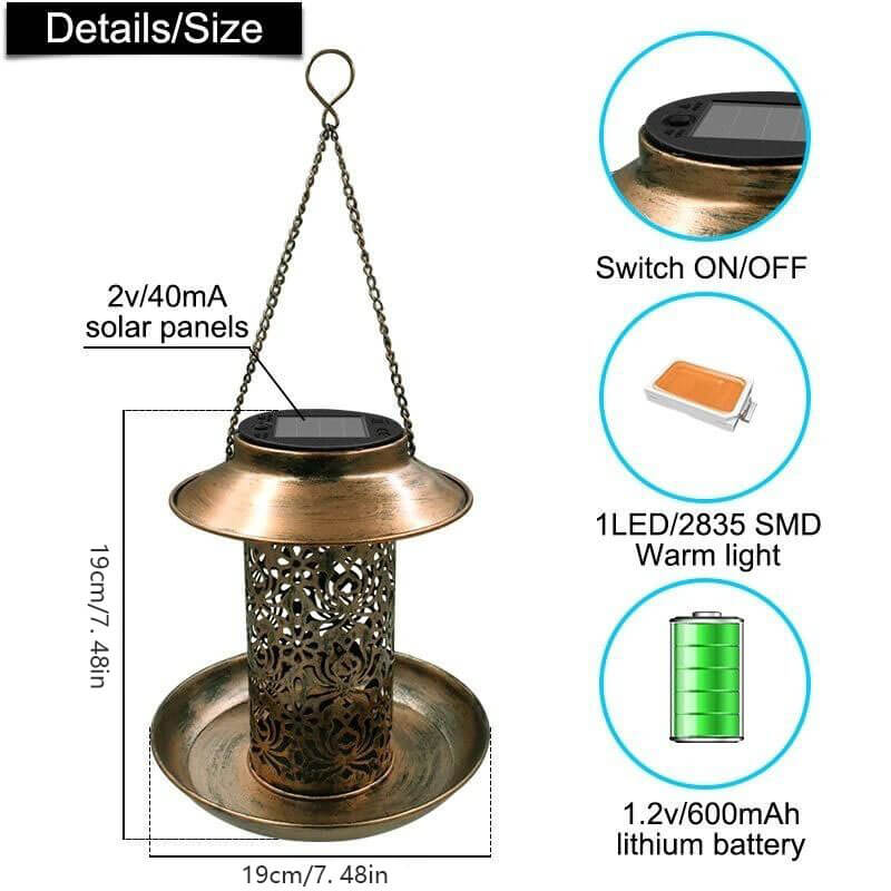 - Bird Feeder & Decoration Lighting - Multi-functional, you can not only use it as a bird feeder but also a decoration lighting in your yard, garden, patio, and tree.