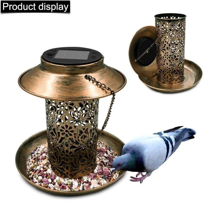 Solar Energy Bird Feeder Waterproof Solar Light Wild Hanging Bronze Metal Tray Solar Lantern for Outdoors Garden Tree Decoration