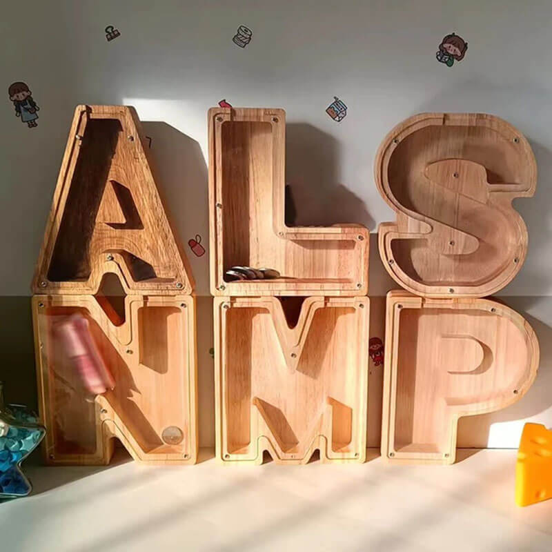 ✔️1 x Wooden Letter Piggy Bank+1 x Letter Stickers (Free)